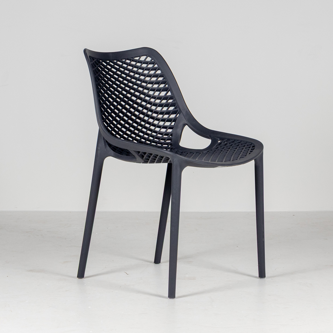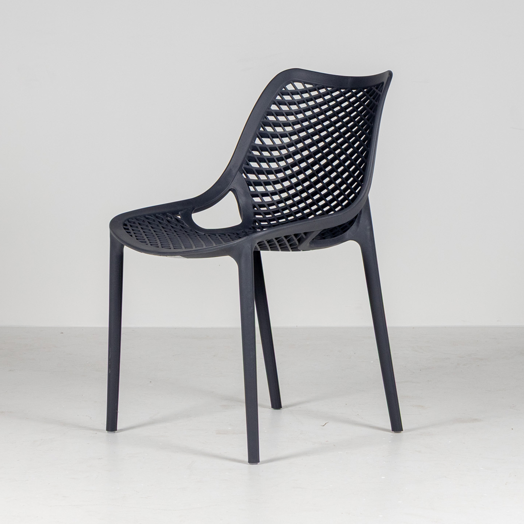 The Saturn chair is available in black and white. Durable and sturdy, with a simple design, the Soul is stackable and has a UV additive to prevent sun damage.