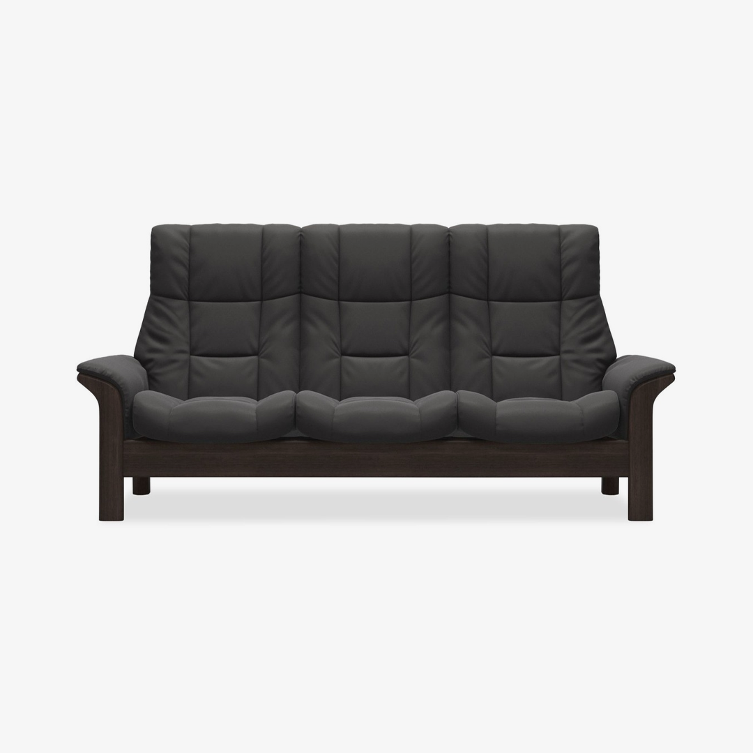 Gentle curves, padded arms and a supple seat, this sofa is as sleek as the name implies. The Stressless® Windsor offers an invitation to pure relaxation in a classic design, with arm and frame detail in wood. Individually reclining seats ensure maximum support for the entire body.