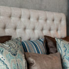 This upholstered linen headboard combines style and comfort with its unique quilted details and deep button tufting. The soft linen texture provides a natural and inviting feel, while the deep tufting creates a classic and timeless atmosphere. The padding offers optimal support for relaxation and reading in bed. The elegant quilted details elevate the design, making it a sophisticated interior piece that suits both modern and classic bedrooms.