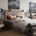 This upholstered linen headboard combines style and comfort with its unique quilted details and deep button tufting. The soft linen texture provides a natural and inviting feel, while the deep tufting creates a classic and timeless atmosphere. The padding offers optimal support for relaxation and reading in bed. The elegant quilted details elevate the design, making it a sophisticated interior piece that suits both modern and classic bedrooms.