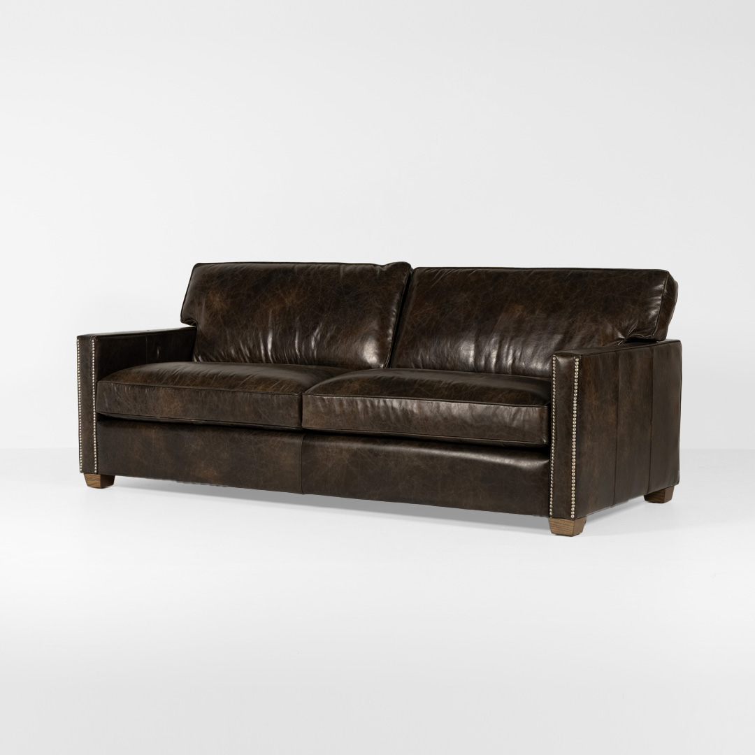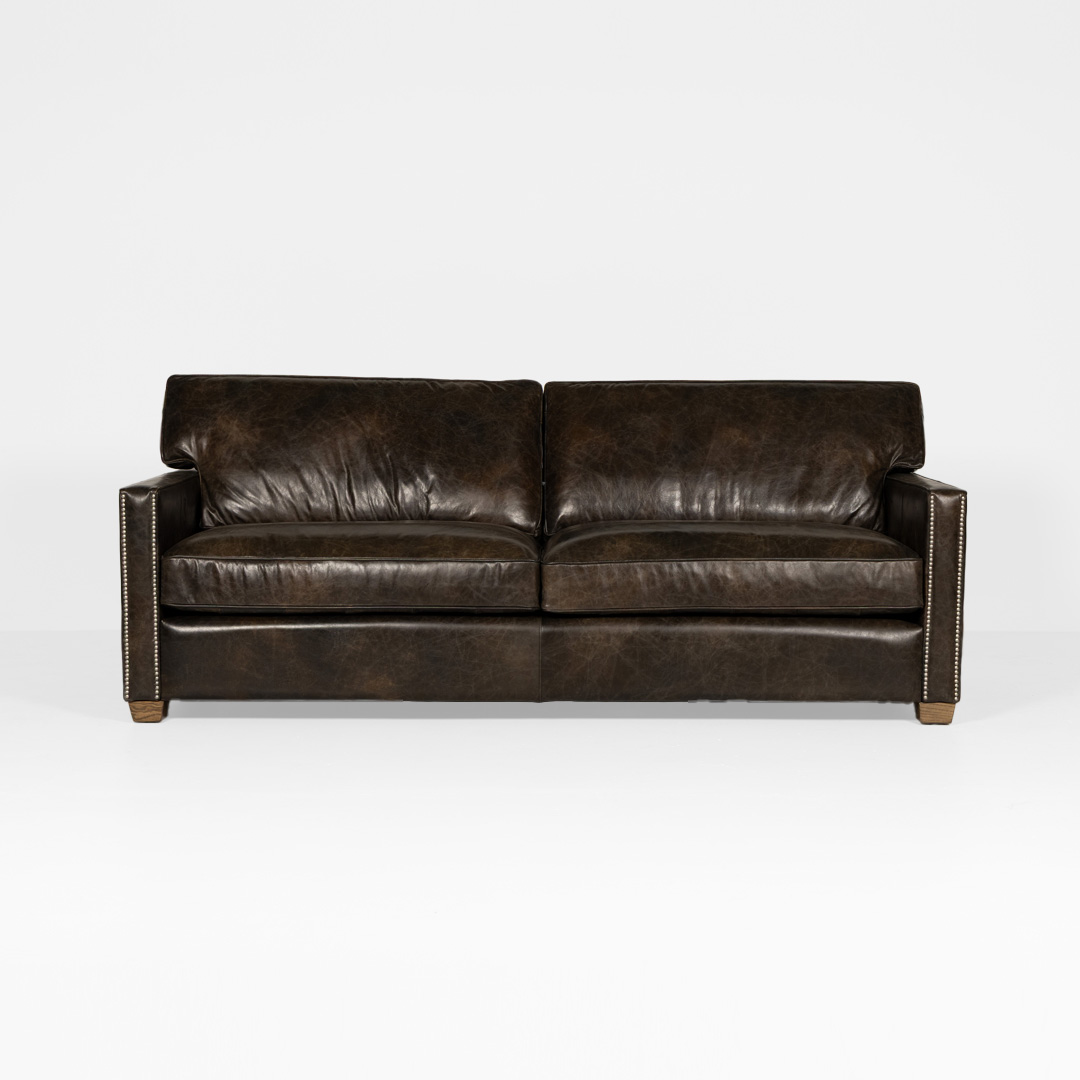 Viscount is a luxurious leather sofa crafted from high-quality leather with a unique vintage appearance. Its sophisticated design features decorative silver studs and sturdy ash wood legs. Viscount offers exceptional comfort and is available as both a 2-seater and a 3-seater sofa. The specially treated leather gives the sofa an elegant, slightly distressed look that adds a timeless appeal. Perfect for those seeking a sleek and comfortable leather sofa with character and quality.