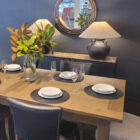 This solid oak, double-extension, dining table (with centre butterfly extension piece)Â has been beautifully crafted and distressed before being hand finished. Each plank of wood has been carefully selected for its unique character ensuring that no piece will be exactly the same. The Wentworth range is available in an antique or weathered oak finish, and also comes as a console table.